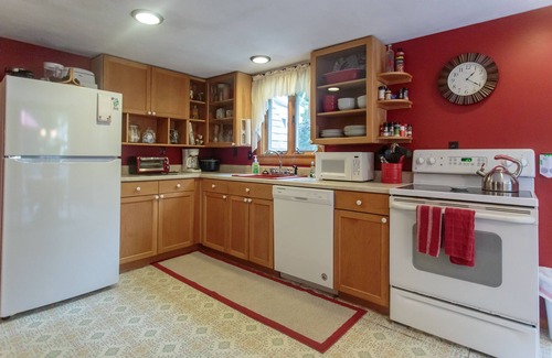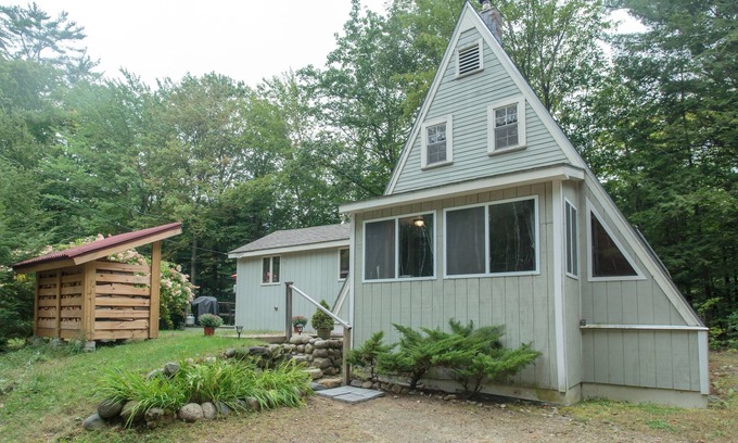 Cozy 2 bedroom A-Frame with lots of charm → Fully equipped + stocked kitchen with sliding doors out to a deck → Plenty of onsite parking → Big yard with patio, gas grill, table with umbrella and chairs, hammock → Wood stove → Flatscreen TV's . 200 Mps Wi-Fi Screened in porch is the perfect place to sit and relax and listen to the babbling brook out front.Or fun bedroom for children. → 20min drive to Plymouth, Lincoln, and Waterville Valley with shopping & restaurants → Lots of hiking nearby