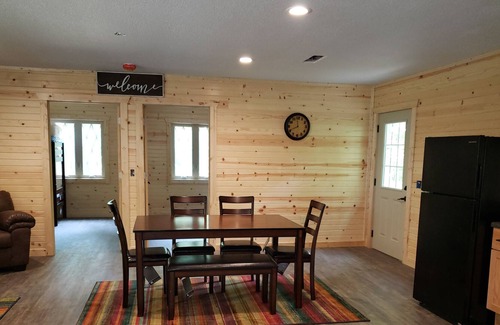 The cabin at Camp Miss-Elk-Ton sits in the middle of a 39-acre wooded park that is bordered by the Elk River. If you are looking for a quite, secluded place to go and relax, this is it! The cabin was totally remodeled in 2019 and is fully ADA compliant. Queen and bunk beds, a large living room/kitchen area with a gas fireplace and a restroom with a ground level shower. Must provide your own bedding. No pets allowed.