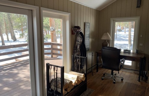 Beautiful 3 Bedroom 2 bath house buried in the pine trees on 4 acres near Wild Basin and Estes Park. Wild Basin (Rocky Mountain National Park) entry road just 200 yards down highway 7 from Tahosa Park South Rd. This is a recreation enthusiast's dream without being too close to the city. Close to fishing, hunting, hiking, biking, and guided horseback tours just a mile down the road at Meeker Park Lodge. The master suite includes full bath, walk in closet and private deck with views of a spectacular ridge. The lower level Queen room has access to lower bath and boast great views from the french doors to the exterior. The dual full sized bedroom has it's own private desk for those who may have to work from home. The home has a huge deck with built in dinning table, pellet grill and adirondack chairs to lounge. The basement living area includes 60" TV on Apple TV. The couch is a Queen pull out. There is a wood insert upstairs for entertainment and heat. The basement includes full laundry machines. The upper level has fully remodeled kitchen with new appliances and a dinning area in the kitchen. The main living area has an 82" Smart TV hooked to Apple TV and DVD player. The DVD collection is around 200 movies strong. There are two desk areas flanking each side of the stone fireplace with wood burning insert for asthetics and heat. Great cabin to work remotely and still get an afternoon hike up to Copeland Falls. There is abundant wildlife in the area including Elk, Deer, Moose and Turkey. This is also a great area to possibly see Black Bear.