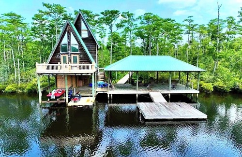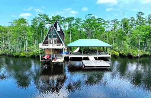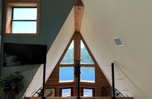 Take it easy at this unique and tranquil getaway. A-frame cabin on the water with huge dock!