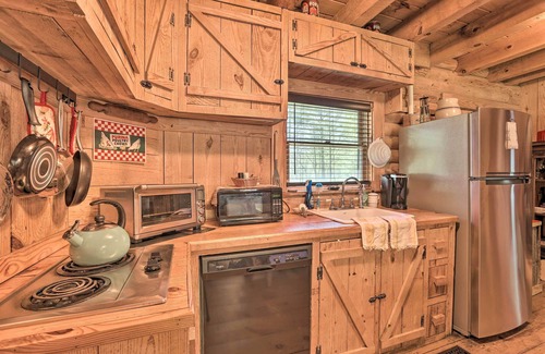 Experience a little slice of Alabama paradise at this 2-bed, 2-bath vacation rental in Hueytown! Located just 20 miles outside of Birmingham, this property is a quiet oasis surrounded by age-old trees, rolling hills, a fully stocked private pond, and plenty of fresh air. With an authentic cabin interior and covered porch, it's the perfect home base for a fishing trip with friends or an off-the-grid getaway. From the banks of Cahaba River to the streets of Birmingham, this cabin can't be beat!