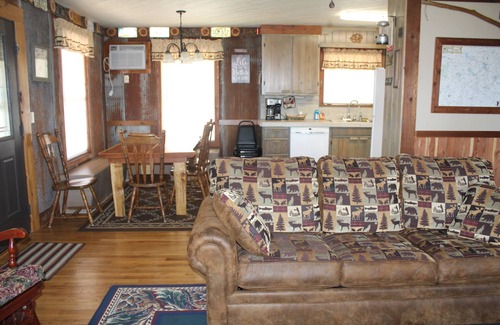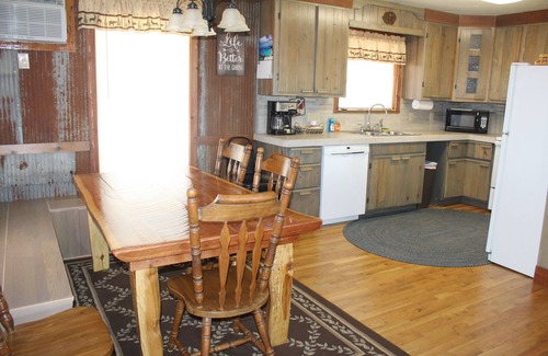 Our two-bedroom, two-bathroom cabin is perfect for your mountain getaway. Equipped with Dish Network HDTV, DVD player and VCR (Redbox in town), cookware, dishes, and all kitchen appliances. All bed linens, pillows, and towels are provided.