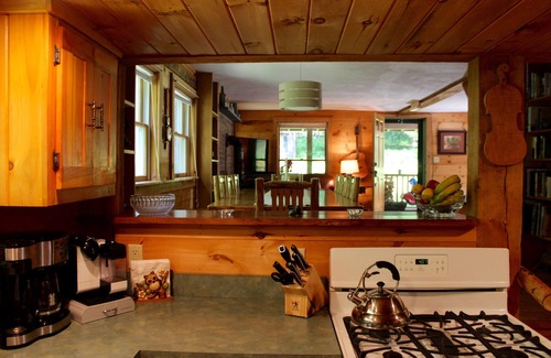 There is an attached log cabin built in the early 1900's that is not part of the rental as of now as we are fixing it up. Nobody will be staying in this log cabin during your stay or anywhere on the property near you. All the pictures are of the new addition that contain 1 bedroom with king size bed and two bathrooms (one off master bedroom). The master bedroom is located upstairs, and we also provide a twin bed. The rental is designed for two people's romantic weekend, but if you have one child they can sleep in the twin bed. There is a wood stove to cozy up to in the winter, but there is also central heating throughout the house.