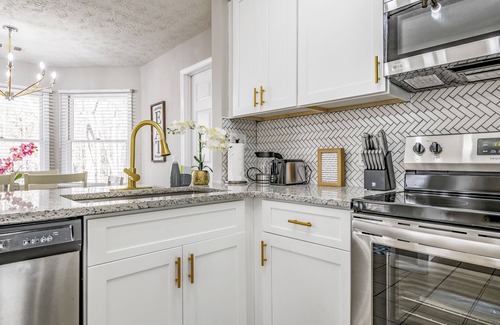 Beautiful updated 3-bedroom 2-full bathroom residential house located in a cul-de-sac of a quiet neighborhood in Gainesville Ga. Stylish finishes, fun entertainment for a whole family includes foosball table, basketball play and Race Out arcade machine. In the office area there is a twin day bed with trundle that can sleep two guests. Newly built deck with furniture that overlooks woods and possibly small animals like squirrels and deer. Wooden secluded location gives a very nice privacy. Only 7 miles to Road Atlanta. Enjoy!