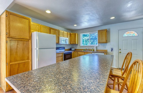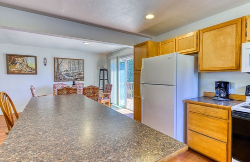 Hidden Escape is located in a peaceful, forested setting and is close to the Pacific shoreline and several beautiful lakes. It is the ideal home for a small family or two couples to get away from the hustle and bustle of their busy lives. This rental has been recently updated and features a roomy living area with a connected kitchen. Outdoors, guests will love spending warm summer days on the front deck enjoying the peace and quiet this entire property has to offer. And be sure to be on the lookout for visiting deer and elk!