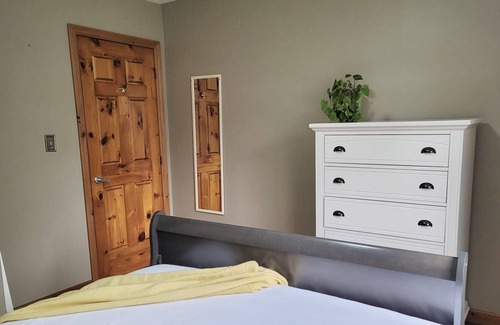 The 5 bedrooms accommodates up to 14 guests. The master bedroom is located on the first floor and features two comfortable double-size beds, a large closet, and an ensuite bathroom. Two other bedrooms are located also on the main floor, each with queen-size beds, shared washroom and stunning views of the surrounding forests. Downstairs are two additional rooms with queen-size bed and two bunkbeds.
