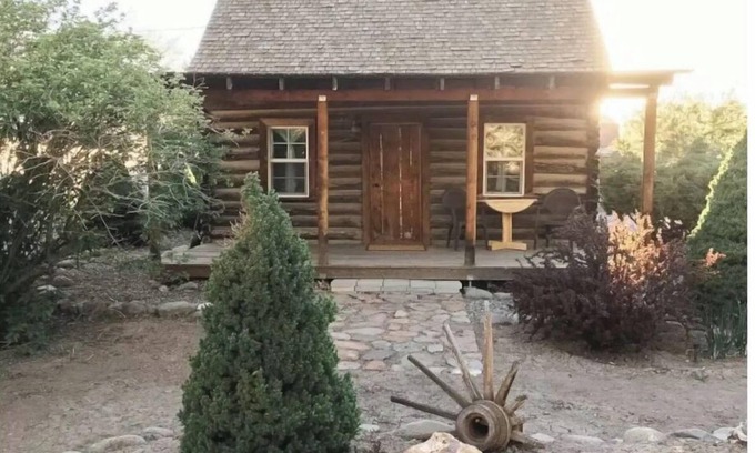 The Cabin, an original first cabin in Monroe, has been restored and holds old country charm. The main floor has a queen bed, table and chairs, a small dresser, and plenty of room to relax. The loft upstairs has three twin beds. The stairs are steep, so probably not a place for Grandma and Grandpa to sleep! The front porch is large and relaxing to sit out and visit or watch the quiet life of our town.