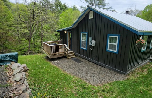 Newly renovated cottage with a fantastic vista of a wooded gully and small brook.Full amenities.Very private,wood burning stove,queen size bed,rear deck,picnic table, fire pit and fast WIFI.High end queen size memory foam sofa bed in the living room. dining/den area facing open woods area with a large picture window.Cast iron bathtub.The closest neighbor is the fenced off small cabin down the road.Very quiet and even in winter there's nothing but wilderness to admire.Remote without feeling lost in the woods with the basic stores/establishments within 7 minutes drive