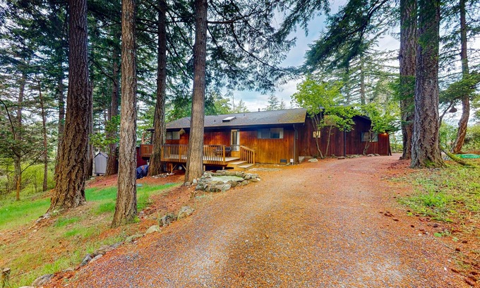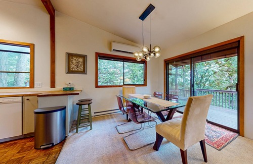 Escape to the tranquil beauty of Orcas Island, WA, and experience a stay at Raven Tree, a spacious and welcoming house nestled in the treetops. This private retreat offers stunning tree-filled views from its wrap-around windows and large deck, perfect for enjoying meals outdoors or watching the sunset filter through the trees.
