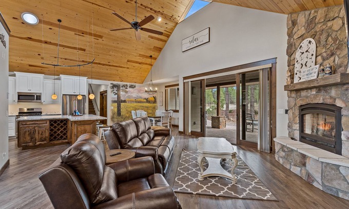 Best-rates for the Flagstaff cabin starts from $745 per night with includes Kitchen, Laundry, Air Conditioner, Parking, TV, Security/Safety, Bedding/Linens, Entertainment, Barbecue/Outdoor Cooking, Sports/Activities, Fireplace/Heating, Child Friendly, Internet StayAndPlay offers fully equipped golf villas, golf hotels, golf resorts, luxury golf cabins, and exclusive golf retreats, making it easier than ever to find your perfect golf escape — ideal for families, peaceful getaways, or pet-friendly retreats with the whole crew.