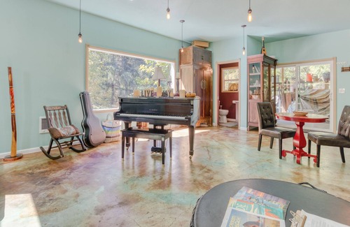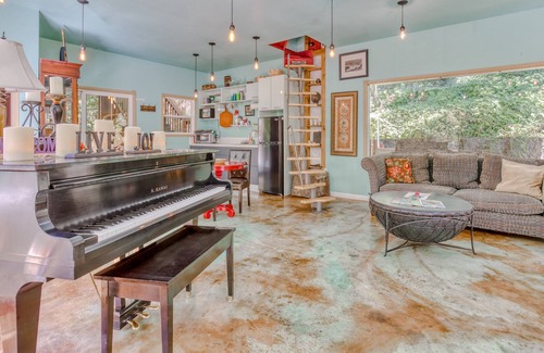 Spread across two floors, the light-filled interior is appointed with thoughtful touches like musical instruments, an electric fireplace, and a foot-and-calf massager. Whip up delicious dishes in the well-equipped kitchenette, complete with a sink, coffee maker, full-size fridge, microwave, toaster oven, and electric cooktop. Then head out to the balcony to dine alfresco!