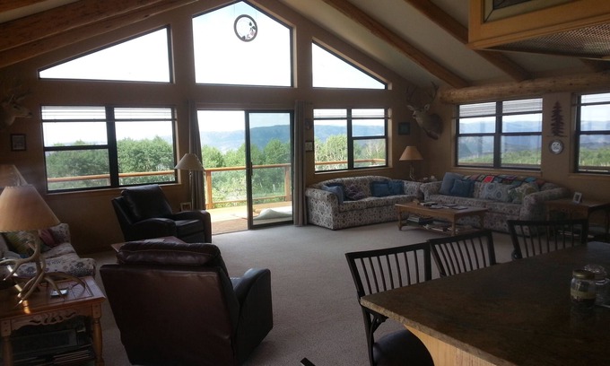 Waldhaus (forest house)2 bedroom 2 bath sleeps 6. Remote location surrounded by private property at 9000 ' elevation with full modern kitchen with all electric appliances, television, wifi, running hot and cold water and carport on gravel/dirt road (all wheel drive vehicles recommended). 25 minutes to Black Canyon National Park, 30 minutes to downtown Montrose and 45 minutes to Currcanti NRA and Lake Fork marina and gold medal fishing. Huge wrap around deck to watch stunning sunrises, sunsets and wildlife from or barbecuing with gas or charcoal and a gas fire pit for night time stargazing. Take a small hike for a casual mile or 2 hike out the front door. 3 nights minimum stay and full week discounts available.