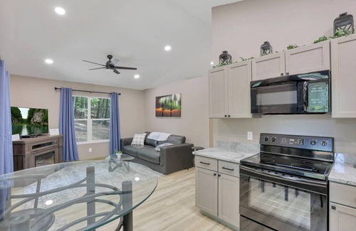 Our fully equipped kitchen allows you to prepare meals with ease, whether you're making a romantic dinner or a quick breakfast before hitting the trails.
