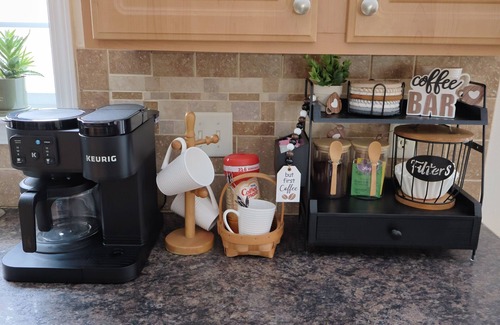 Washer/dryer, extra blankets and pillows, and a generous supply of towels (with extras for hot tub use).