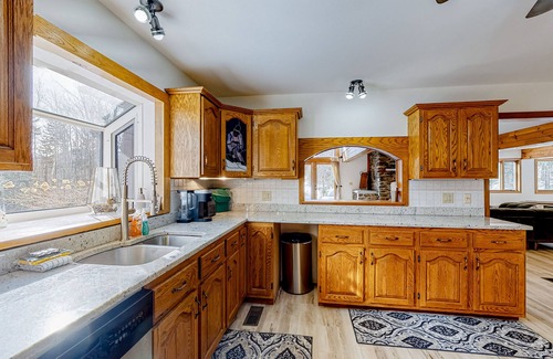 You'll find a game table and chairs up a spiral staircase, perfect for a late-night card game and another TV. With so much to do at home, you may not explore too much outside, but spectacular sunset views of Jay Peak from the large deck are gorgeous no matter the season. And you can also treat yourself to soothing baths in the private hot tub. Only three miles from Jay Peak and two and a half miles to the Jay Community trail system featuring groomed trails for snowshoeing, cross-country skiing, and fat biking. When the snow melts, these become fantastic hiking and mountain biking trails. Enjoy the private firepit next to the babbling stream in the summer. The Hibernation Station awaits your perfect vacation - all that's left to do is book it.
