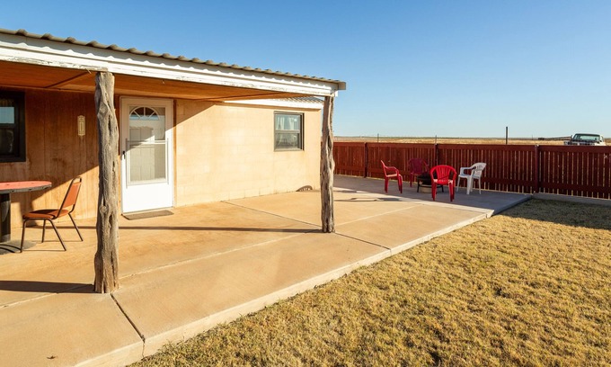 The property is about a mile from the highway down a county-maintained, caliche road (County Road 660) that can get muddy in wet weather. Your local host is available to advise.