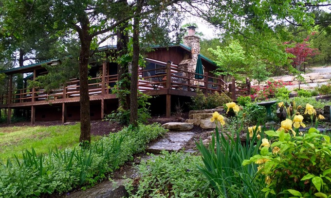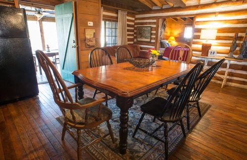 Sitting in a beautiful secluded cove on Table Rock Lake, Gypsy Dell Log Cabin is perfect for a romantic getaway, or for families and friends who want to stay right on the lake! There's excellent swimming, fishing, hiking, water sports, and a boat slip with a swim deck. This location gives you quick access to Silver Dollar City, plus all the shows, shopping, golf, restaurants and attractions of Branson, Branson West and Kimberling City.