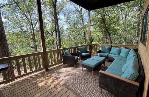 Placed on 1.25 acres of premium wooded & waterfront property guests will enjoy complete privacy from all sides providing a perfect escape from reality! On the property a gentle slope from the home down the private mulched pathway will lead you straight to the waters edge of the quiet 100+ acre cove! From there guests may enjoy the use of Kayaks (kids & Adult) included with their stay.