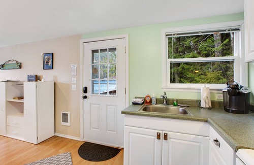 This secluded and serene, lakefront home is the perfect place for an Olympic Peninsula vacation you'll never forget. Wake up each day to the sound of the water lapping against the dock and a panoramic view of Lake Sutherland. Whip up quick breakfasts or full-course dinners in the well-equipped kitchen, share meals and conversation in the quaint dining area, or chill in the living area and watch TV or just stare out the windows. Right outside, there's a furnished deck over the water where you can drop a line and fish for cutthroat trout.