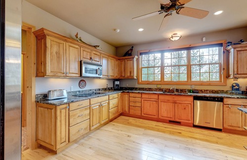 Experience the ultimate beach getaway in this spacious coastal home, just a short stroll from the sandy shores. Perfect for a much-needed family getaway where the hustle and bustle of the city won't be a problem, this three-story, secluded home is ready for you! As soon as you enter the home's main level, you'll notice floor-to-ceiling windows and a bright interior with gorgeous wooden accents throughout; this gives guests that chic rustic feeling no other homes can achieve so elegantly. The open floor plan is ideal for family gatherings; no matter what you're doing, no one will ever feel left out. Kick your feet up and relax in the inviting living room as you let the sun's rays lull you to a peaceful experience. If it's too cold for your liking, you can throw some logs into the wood-burning fireplace and listen to the fire crackle. On your way to the kitchen, you'll come across a dining table with space for guests, plus more seats at the kitchen bar. On the spacious patio, there is an outdoor dining table offering even more spots.