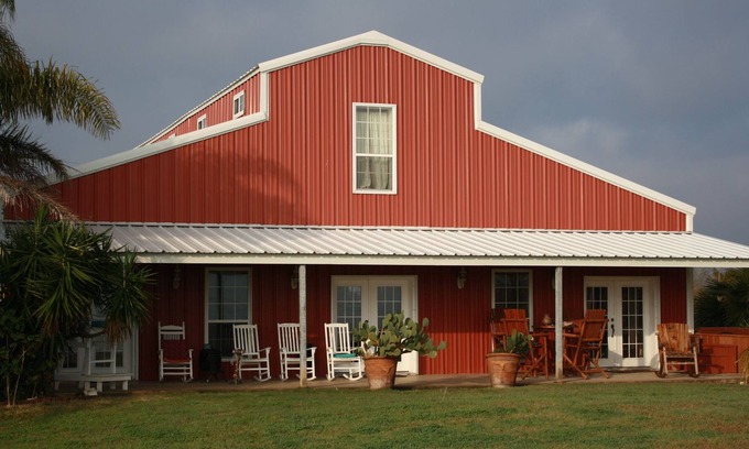 Unique barn style lodging with a fifty foot porch and private fishing pier on Carancahua Bay. Located on a working cattle ranch (Some Beach Ranch). Includes large commercial cooking and sitting area. Includes a pool table and a large hot tub. Come watch the sunrise, pelicans, porpoises, and fish from the pier or go kayaking for redfish. Our miniature donkeys, Betty and Hazel, love a carrot or two. A great place to relax and get away!!
