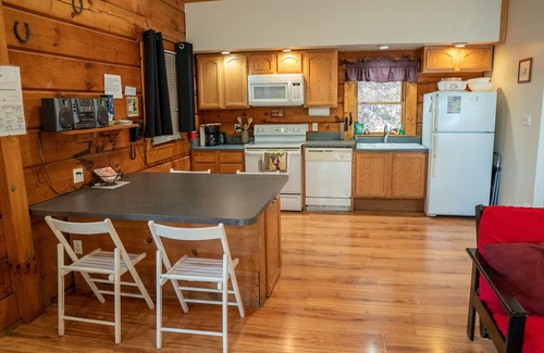 Hemlock Hollow..is a 2 bedroom Custom Built Log home with Cathedral Ceilings and a Two-Person indoor Whirlpool Tub....and a Hot tub on Expanded Deck!....