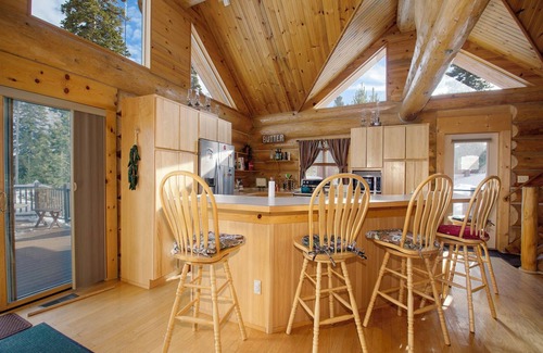 Amenities: Free WiFi, Pet Friendly, Charcoal Grill, Wood Burning Stove, Outdoor Hot Tub, Pool Table, Foosball Table, Electric Keyboard with headphone option, Washer/Dryer, 4-wheel drive vehicle, Large Deck with Patio Table, Fire Table; Pak n Play, no air conditioning.