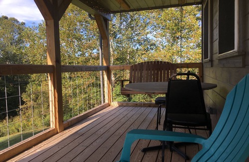 This beautiful cabin was built in 2014 and the craftsmanship is unbelievable! Beautiful full plank hardwood floors, granite counter tops and window sills, stainless everything, and 5.5 acres to roam and do as you please. Build a fire, walk the trail through the woods, or just drive 5 min down the road to Salt Fork State Park and enjoy fishing, boating, golfing and more! This cabin has a loft with a queen size bed and the pull out couch in the LR allows room for two more guests to sleep.