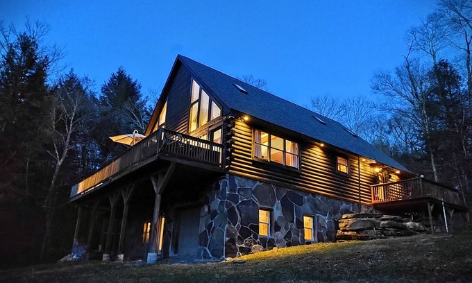 Secluded modern log cabin with picturesque private water fall on 12 acres! | Cabin in Roscoe