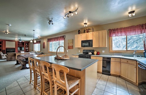Aspen View Lodge offers the perfect mountain getaway. Your Colorado retreat begins at this 8 bedroom, 3.5-bathroom vacation rental home in an adventure lover’s paradise - the Dolores River Valley. With 4,500 square feet of living space, this home base is perfect for group retreats and events, or just to escape with friends and family. Situated on nearly 8 acres bordering the San Juan National Forest, this is an ideal base camp to explore the Southwest. Located minutes from hiking, ATVing, 4x4 trails, biking, fishing, and hunting, this place has it all! Nearby Cortez and Telluride! Just across the road from the Dolores River! Ideal for family reunions and weddings. The arch and benches shown in the pictures is a beautiful area to hold a ceremony. We do have an additional fee to hold an event on our property. Our lodge can sleep 26. We are centrally located between Cortez and Telluride offering a wide variety of restaurants, shopping, museums, National Parks and skiing. Only 20 minutes from McPhee Reservoir, one of the largest bodies of water in Colorado!