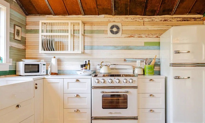 •Eat-in kitchen w/ induction/convection range, microwave, toaster, and coffee maker along with fully stocked dishes and starter supplies.