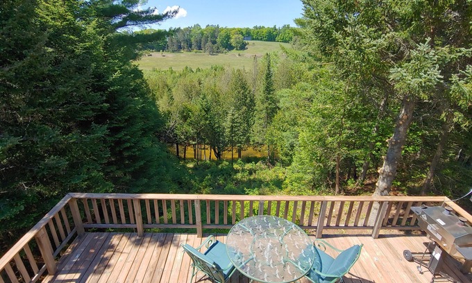 Overlooking Ocqueoc River and quietly nestled back in the woods is your vacation retreat. Perched on the South Bank, the Back Deck provides spectacular morning and evening views of the river a stone's throw away.