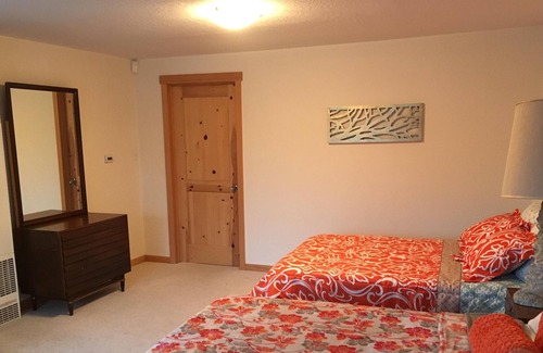 Our Secluded 3200 sq.ft. home is open and welcoming. Sleeping 8, it is an Entertainers Delight, with Pool Table and Big Screen TVs. There are 3 Queen beds, 2 Full beds, and 1 Twin. Each bedroom has a full bath. The oversized tub in the Master bathroom or our private sauna are welcoming treats after a long, fun day on the slopes or river.