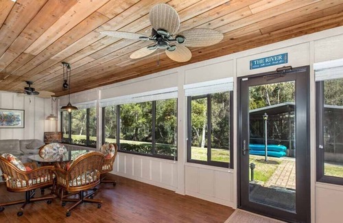 Venture into the bunk/game room for foosball, basketball skill shot, video game or board/card game. Need a quiet place to watch the nature while still indoors...then try out Mermaid lounge. How about a puzzle in the Sunroom Library. You will be able to enjoy all of this with 60 feet of windows looking out to the river. Want to be right on top of the river...then the screened Gazebo is perfect for you to watch the river go by, with the sounds of mullet jumping and the birds singing. You might even see one of our winter visitors, the wonderful manatee or spy a Whitetail deer foraging for food across the river or an otter swimming off the dock.