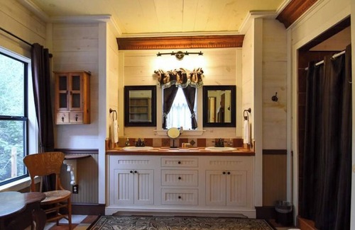 The Oasis is a Spa-Themed cabin, complete with Hot-Tub, Massage table, and large Bathroom area.
