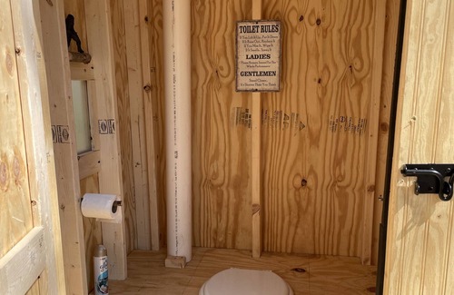 This is a very rustic and off-the-grid experience! We offer a solar panel +Jackery Battery Hub for charging phones, laptops and powering interior cabin lights and fan! It also means using newly constructed outhouse, which is kept super clean! Outdoor sink for washing hands is included as well.