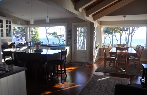 Catch the sunrise while sipping your morning coffee on the front east facing deck overlooking the sandy beach below, and delight in the abundant marine life: eagles, herons, sea lions, otters, seals, or the occasional pod of orcas or humpbacks.