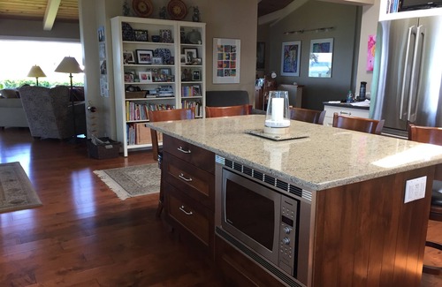Our VRBO rental includes most i.e., approximately 2800 square feet of our home: large kitchen, living room, spacious master bedroom with ensuite, second bedroom with adjacent bathroom; all on the main floor oriented towards the ocean, a queen sized sofa bed in a downstairs office adjacent to a spacious downstairs TV room (65" TV) in addition to laundry room with washer/dryer. Guests may enjoy the private use of all the extensive grounds (front and back), all decks and our pathway to the beach. See photos.