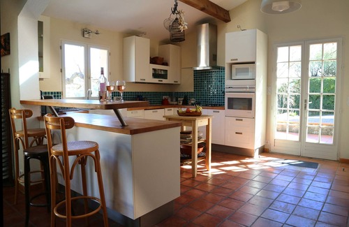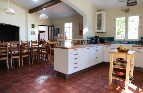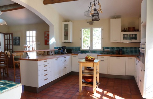 • Large open floor kitchen opening on to shaded terrace equipped with stone barbecue