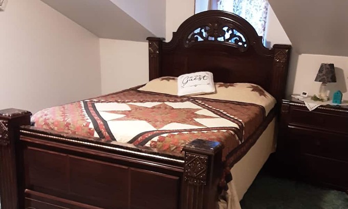 Enjoy a quiet, very secluded getaway on our property, only minutes from the Appalachian trail and some great lookout points, quiet outdoors, take a walk in the woods and maybe see a few deer. A spacious master bedroom with a master bathroom with a big bathtub and a separate shower. Also an upstairs bedroom with a queen bed and bathroom.