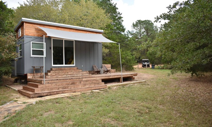Escape, while staying close to Austin, to our sustainable tiny home on a wildlife-rich ranch. Nestled in 100+ acres of natural beauty, enjoy off-grid living with a pond, hiking trails, and abundant wildlife. Disconnect and unwind in this eco-conscious retreat without compromising on modern conveniences.