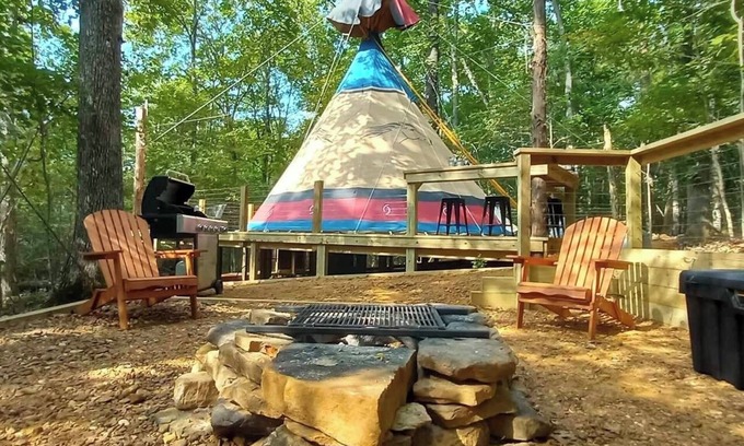 Secluded Tipi {Teepee} In The Shawnee National Forest is located in Ozark. Secluded Tipi {Teepee} In The Shawnee National Forest provides accommodation, featuring Air Conditioner, Parking, Security/Safety, among other amenities. This RV Rental features Air Conditioner, Parking, Security/Safety, to make your stay a comfortable one.