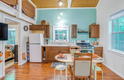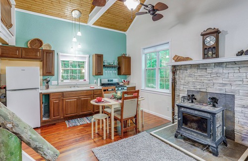 Escape the ordinary at this 1-bedroom, 1-bath vacation rental, tucked away in Mountain View. You'll feel right at home in this well-equipped cabin with its charming interior and essential amenities, like a wood-burning stove for cozy nights, a spacious loft, and a deck for sunny mornings. Spend your days swimming and fishing in the on-site creek or exploring Blanchard Spring Caverns nearby. End your adventures by firing up the grill for a delicious BBQ under the starry sky.
