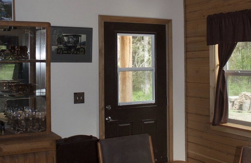 Majestic Mountains, rivers, a pond and abundant wildlife are just a few things that await you at Fisher River Retreat. A wonderful secluded 2 story lodge is set in a wooded area. The lodge includes 2 bedrooms downstairs, with 2 queen beds in one bedroom and 2 twin beds in the other. There is a bathroom downstairs with a shower/tub combination. There are 2 bedrooms upstairs, one with 2 twin beds and the other master bedroom with a single queen bed. The master bedroom has a private balcony. There is a bathroom upstairs with a full shower. The lodge will easily sleep 10 people. The beds have full linens, blankets and pillows. The kitchen is located downstairs and is fully stocked complete with electric stove/oven, microwave, refrigerator, coffee maker and all utensils, plates and cups. The upstairs loft over looks the dining room and living room downstairs. A fire ring is setup nearby with a cooking grate and utensils should you desire to cook outdoors over a fire. The lodge is a short walk down to the Fisher River.