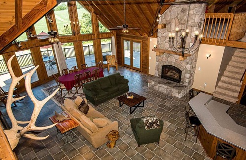 Amazing cozy lodge awaiting your friends and family situated on 10 acres with plenty of space for all throughout the 6400 sq feet inside. All bedrooms include outside access to either wraparound patio or lower patio and heated floors throughout. Perfect quiet getaway with wraparound balcony for watching the deer, turkey or eagles or simply reading a book. Outdoor firepit for making smores or watching the stars. Large covered entryway for playing bean bags, cards or hangning out and relaxing. Lodge is secluded and peaceful with high speed internet available. Located about 10 minutes from Savanna, IL and 30 minutes from Bellevue, IA or Galena, IL.