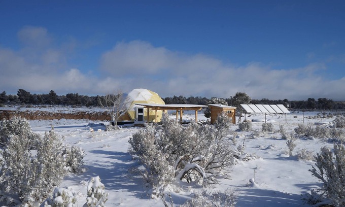 The Dome @Ranchatmesaverde is an off-grid custom building with incredible views of Mesa Verde National Park, La Plata Mountains, Ute Mountain, Monticello range, and even the Wilsons near Telluride.
