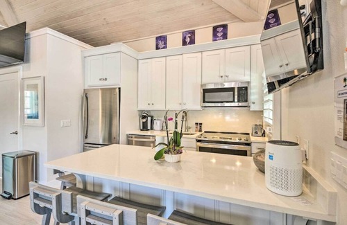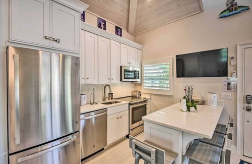 Convenience and ambiance rule this 1-bath New Smyrna Beach studio whose community amenities include a heated saltwater pool, an outdoor shower, a gazebo, 2 charcoal grills, and on-theme lounge chairs for ample time under the sun. When you’re not indulging in the on-site perks, kayak/fish in the Indian River, walk to the beach, and reserve some time at Dunlawton Sugar Mill Gardens’ intricate botanical arrangements. This vacation rental has all the elements needed for a worry-free daily routine.