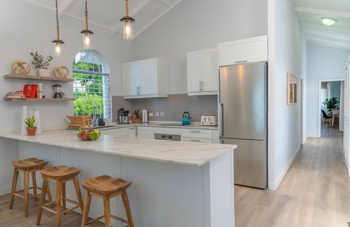 Guests will enjoy meals in the state-of-the-art kitchen or while dining on the patio, enjoying the cool Caribbean breezes and gentle rolling of the waves. Guests can also enjoy the gazebo located on the stairs that lead to the beach; delightful for enjoying a sundowner before heading out to dinner.