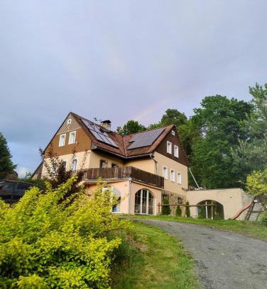 Sedlonov 178 enjoys a location in Sedloňov, 16 miles from Polanica Zdroj Train Station and 16 miles from Errant Rocks. Featuring a bar, the property is located within 9.3 miles of Kudowa Zdrój Train Station. There's a children's playground and guests can access free Wifi and free private parking. The guest house provides guests with a terrace, mountain views, a seating area, a flat-screen TV, a fully equipped kitchen with a dishwasher and a microwave, and a private bathroom with walk-in shower. A toaster, a fridge, and stovetop are also available, as well as a kettle. At the guest house, every unit is equipped with bed linen and towels. Guests at Sedlonov 178 can enjoy a continental breakfast. Guests are welcome to eat at the on-site family-friendly restaurant, which is open for dinner, lunch, and cocktails. The area is popular for skiing and cycling, and ski equipment rental is available at this 2-star guest house. There is a garden with a barbecue at this property, and guests can go hiking nearby. The Grandmother's Valley is 17 miles from the accommodation, while Chopin Manor is 10 miles from the property. Pardubice Airport is 40 miles away.