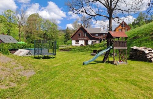 Sedmikráska in Horní Maršov provides accommodations with a bar and a shared lounge. The accommodation offers a ski shuttle, as well as pool with a view and a garden. There's a sun terrace and guests can access free Wifi and free private parking. There's also a well-equipped kitchen in some units equipped with a dishwasher, an oven, and a microwave. At the chalet complex, the units include a shared bathroom. The area is popular for hiking, and bike rental is available at the chalet. Skiing and fishing can be enjoyed nearby, while a ski equipment rental service, a ski pass sales point and ski storage space, are also available on-site. Bus Stop Strážné is 19 miles from Sedmikráska, while Western City is 22 miles from the property. Pardubice Airport is 57 miles away.